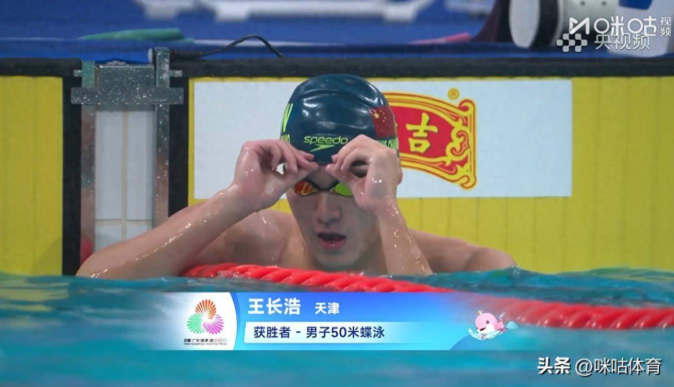 最初0.15秒!全运会男人50米蝶泳决赛,王长浩23.30秒夺得金牌!