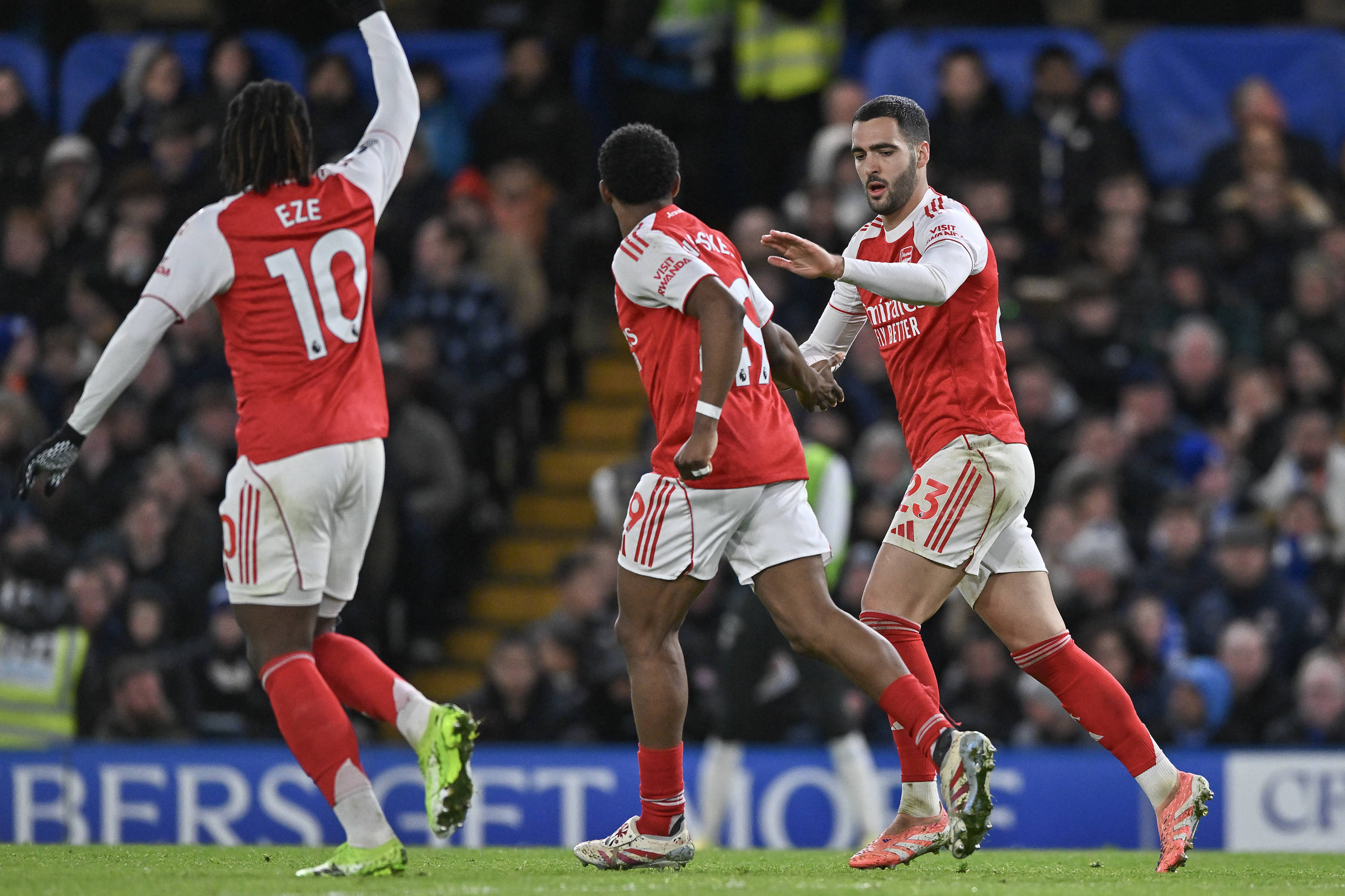 第13轮比赛事后,阿森纳以30分领跑积分榜。曼城和切尔西区分以25分、24分列第二、三位。